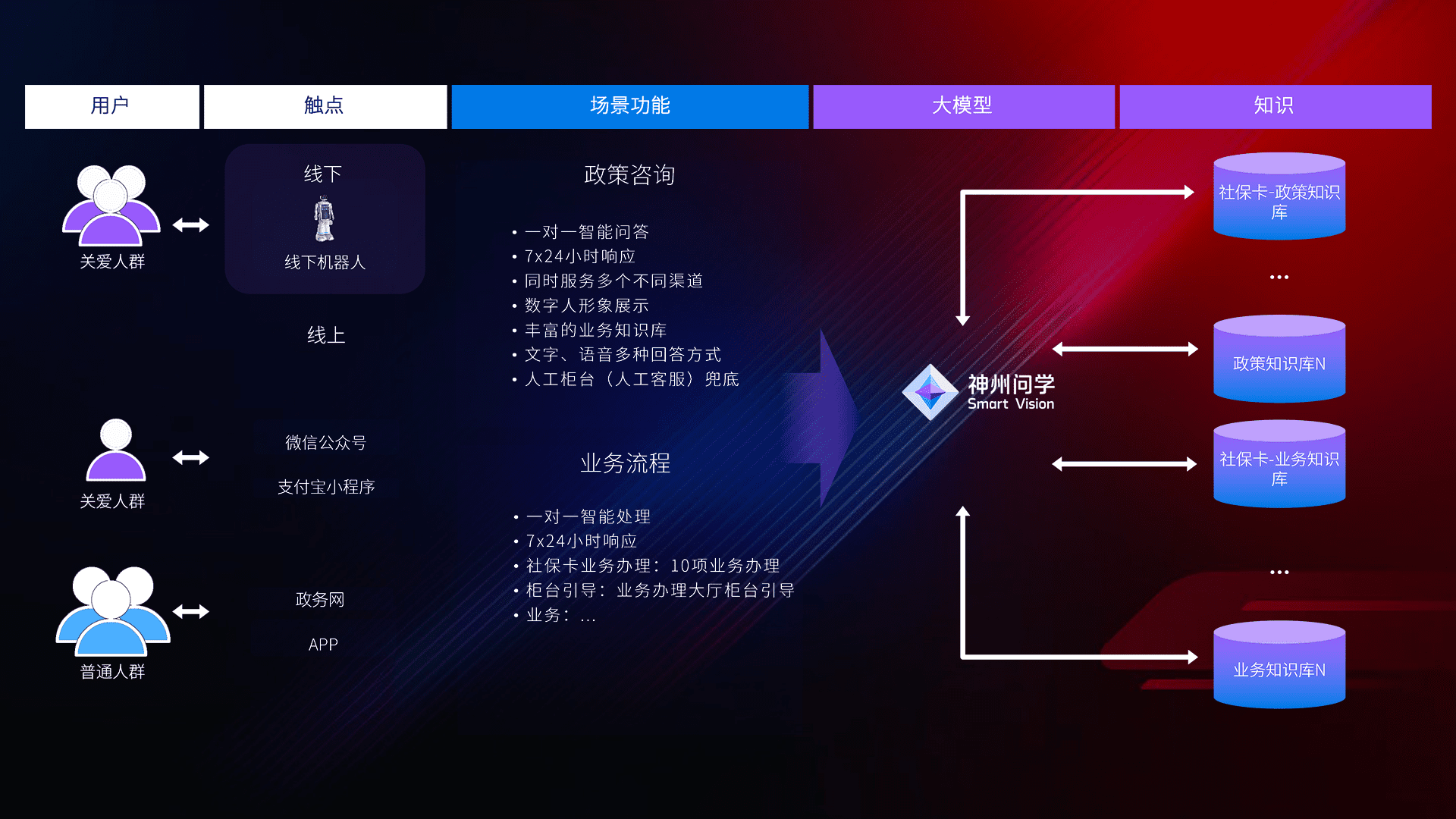 • 线上线下全覆盖:线上提供微信公众号、、支付宝小程序、、政务网、、app多种渠道,,,与线下机器人形成完整服务体系。。。。